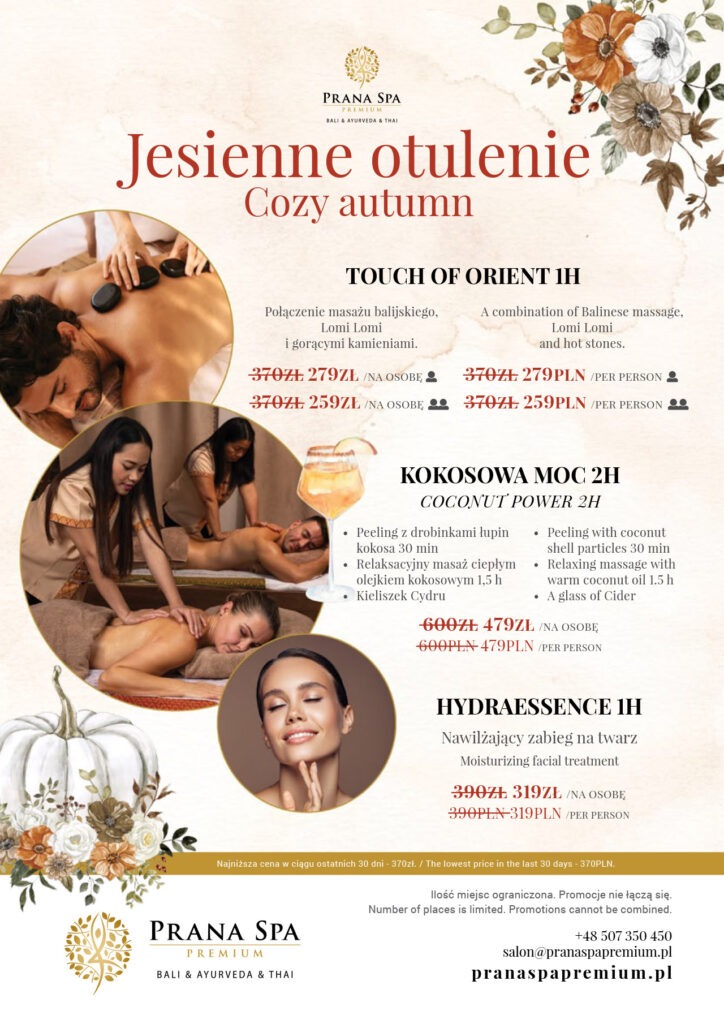 Masaż autorski Prana Spa Premium. Spośród najbardziej popularnych masaży na świecie wybraliśmy najlepsze techniki relaksacyjne i połączyliśmy je w jedną całość. Podczas masażu stosujemy techniki masażu balijskiego, Lomi Lomi i gorącymi kamieniami.